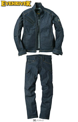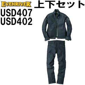 【送料無料】 上下セット イーブンリバー (EVENRIVER) ストレッチデニムブルゾン USD407 (S〜3L)&カーゴ USD402 (S〜3L) セット (上下同色) 秋冬用作業服 作業着 ズボン 取寄